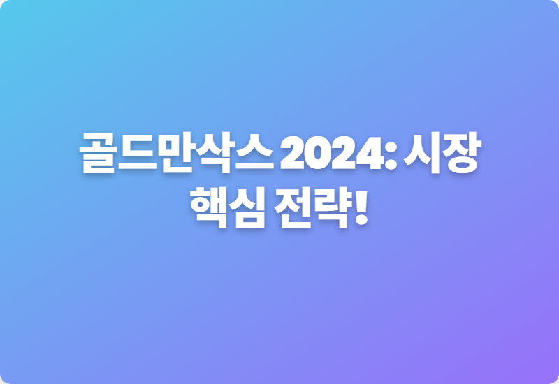 #골드만삭스 #시장전망 #투자전략