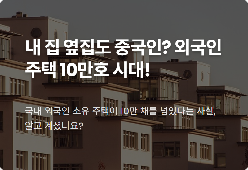 국내 외국인 소유 주택이 10만 채를 넘었다는 사실, 알고 계셨나요?