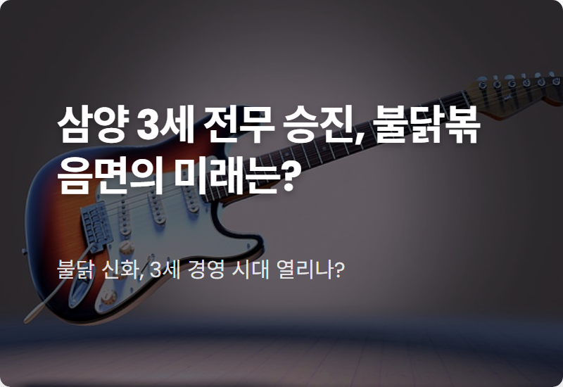 바로 오너 3세인 전병우 신임 전무의 파격적인 승진 소식인데요, 과연 이번 인사가 불닭볶음면과 삼양그룹에 어떤 변화를 가져올지 벌써부터 많은 분들이 궁금해하고 있답니다.