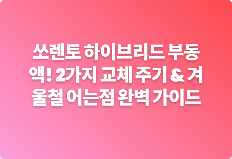 이 글에서는 여러분의 소중한 쏘렌토 하이브리드가 추운 겨울에도 끄떡없도록, 부동액 교체 주기부터 겨울철 어는점 확인법, 그리고 왜 이 관리가 중요한지까지, 제가 직접 경험하고 찾아본 정보를 바탕으로 쉽고 친근하게 알려드릴게요.