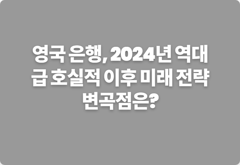 과연 영국 은행들은 지금의 성공을 넘어 미래를 어떻게 그려나가야 할까요? 🧐