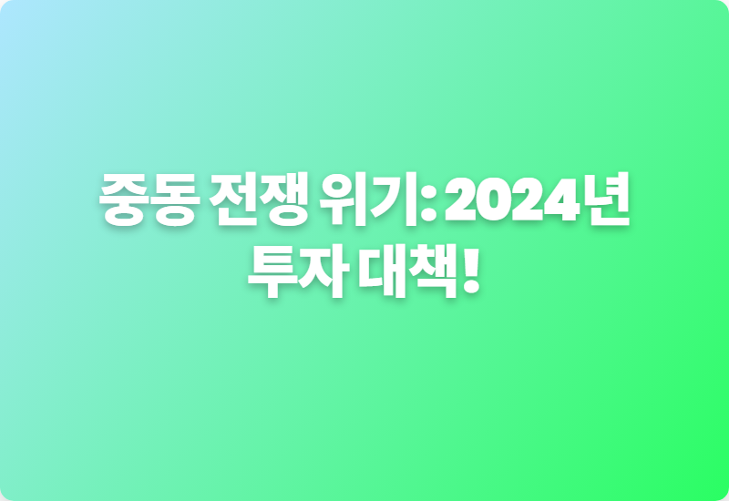 #중동전쟁 #투자전략 #포트폴리오관리