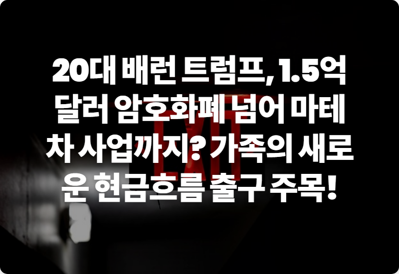 그의 이러한 행보는 단순히 개인적인 성공을 넘어, 미국 정치와 금융, 그리고 테크 산업의 교차점에서 트럼프 가문의 새로운 현금 흐름 출구로 해석되며 큰 주목을 받고 있답니다.