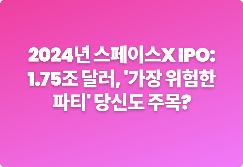 안녕하세요, 여러분! 최근 금융 시장에서 가장 뜨거운 감자로 떠오른 소식, 바로 엘론 머스크의 스페이스X IPO에 대해 들어보셨나요?