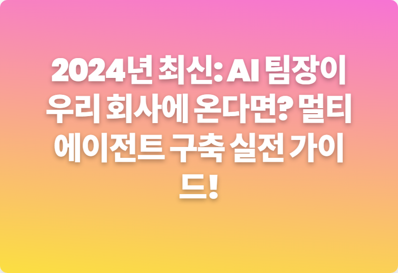여러분, 혹시 복잡한 업무를 혼자 처리하느라 AI의 한계를 느껴본 적 있으신가요?