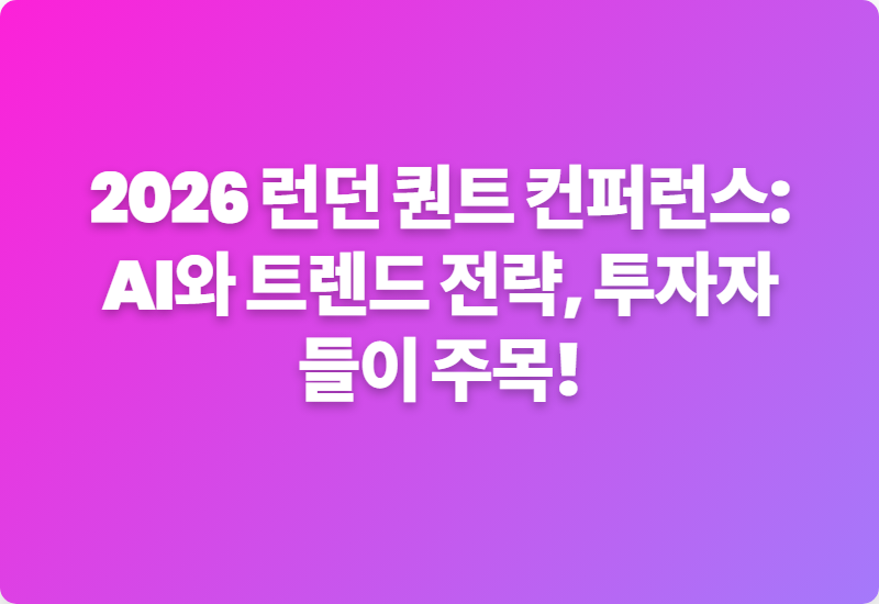 #퀀트투자 #AI투자 #2026런던퀀트